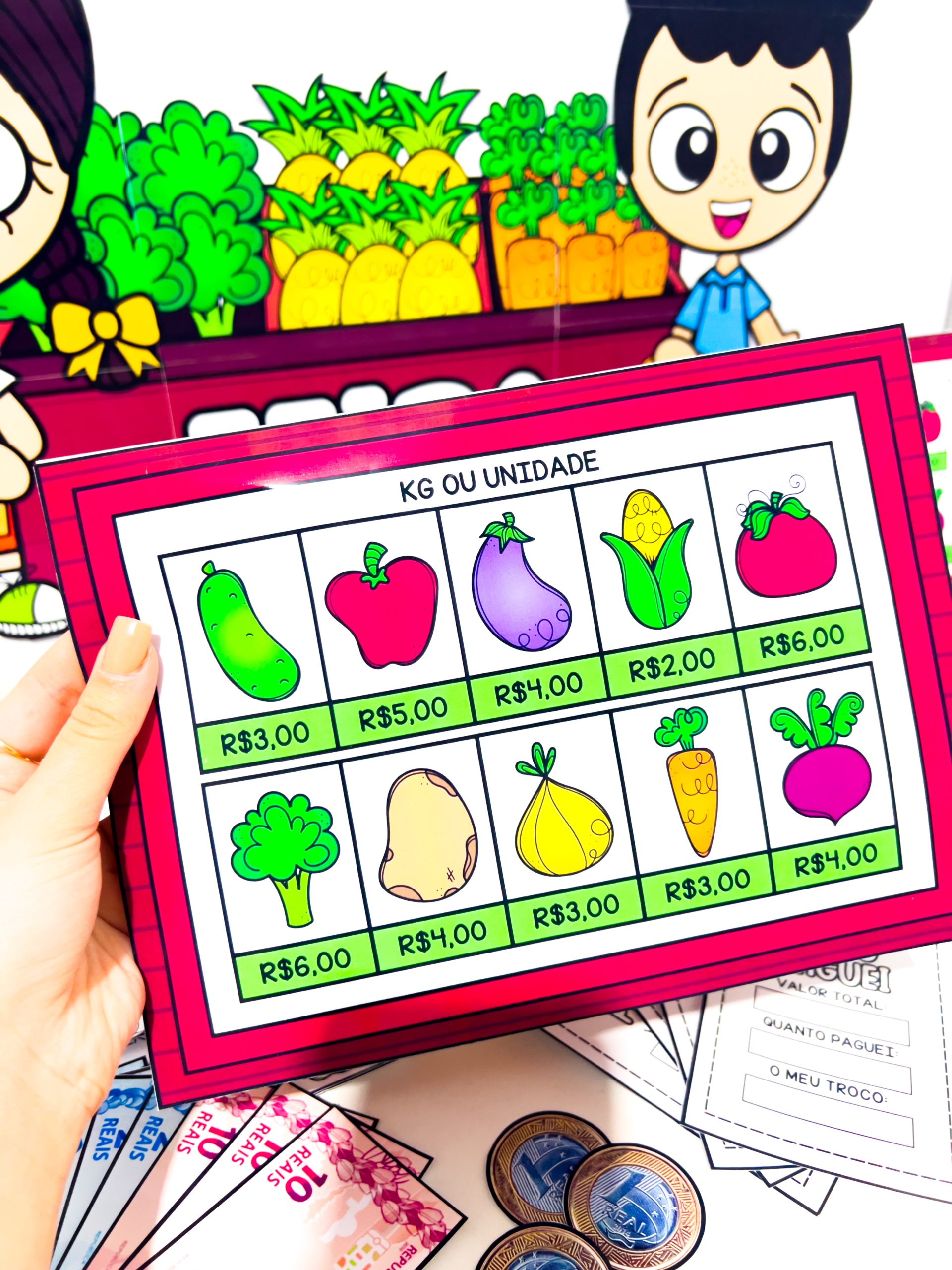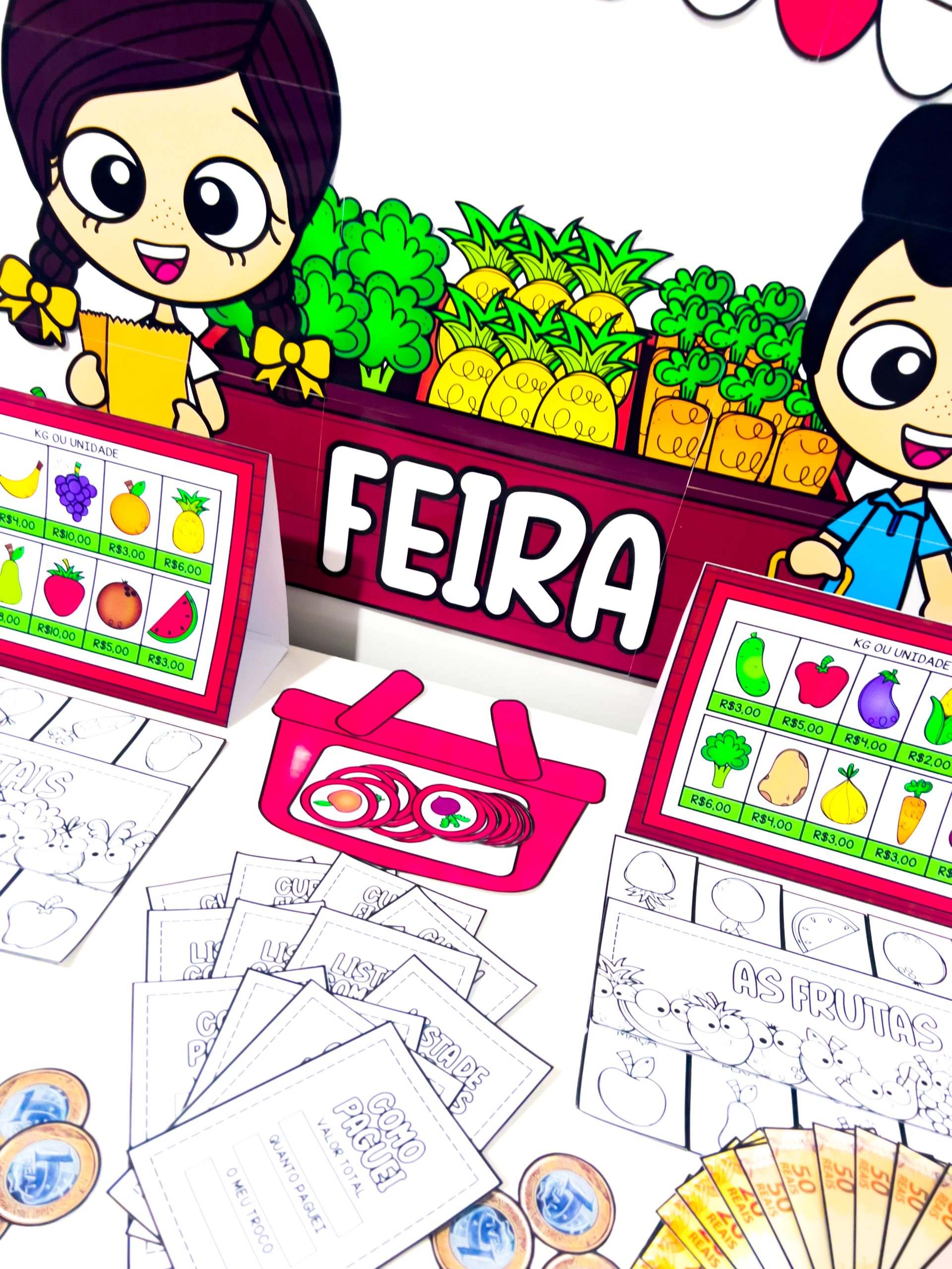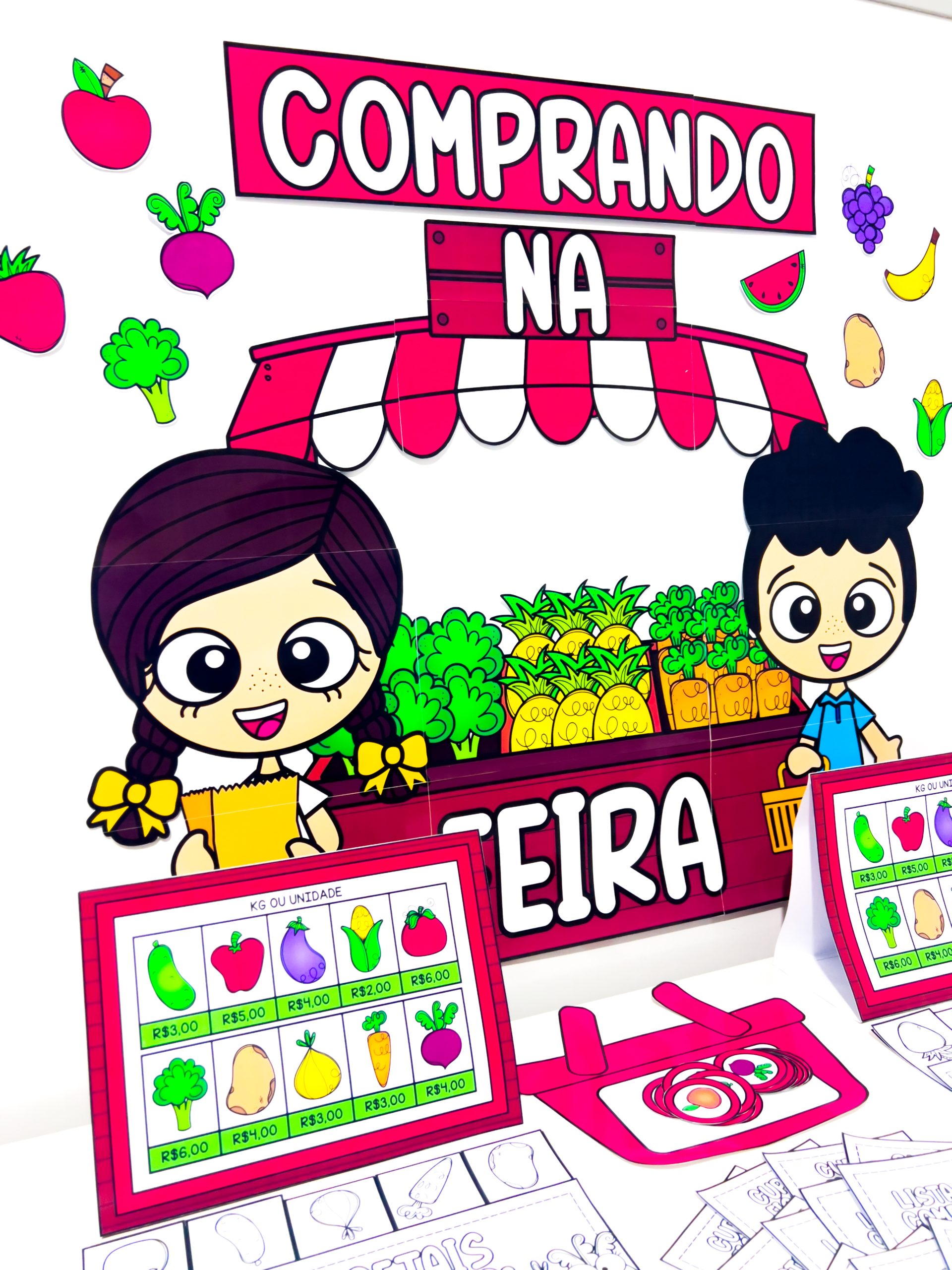 Um recurso pedagógico lúdico que transforma o aprendizado em uma experiência divertida sobre compras, valores e cotidiano da feira!