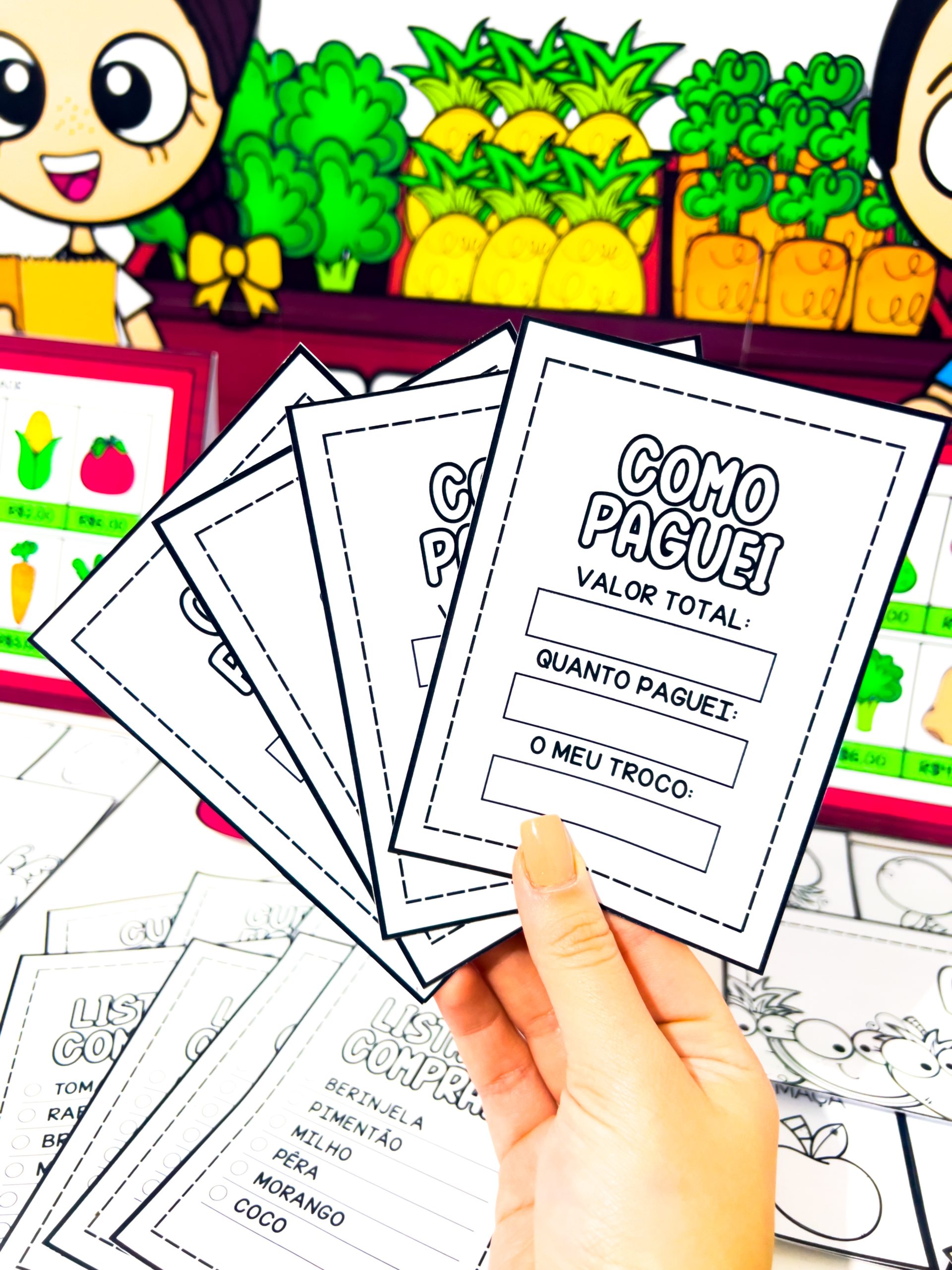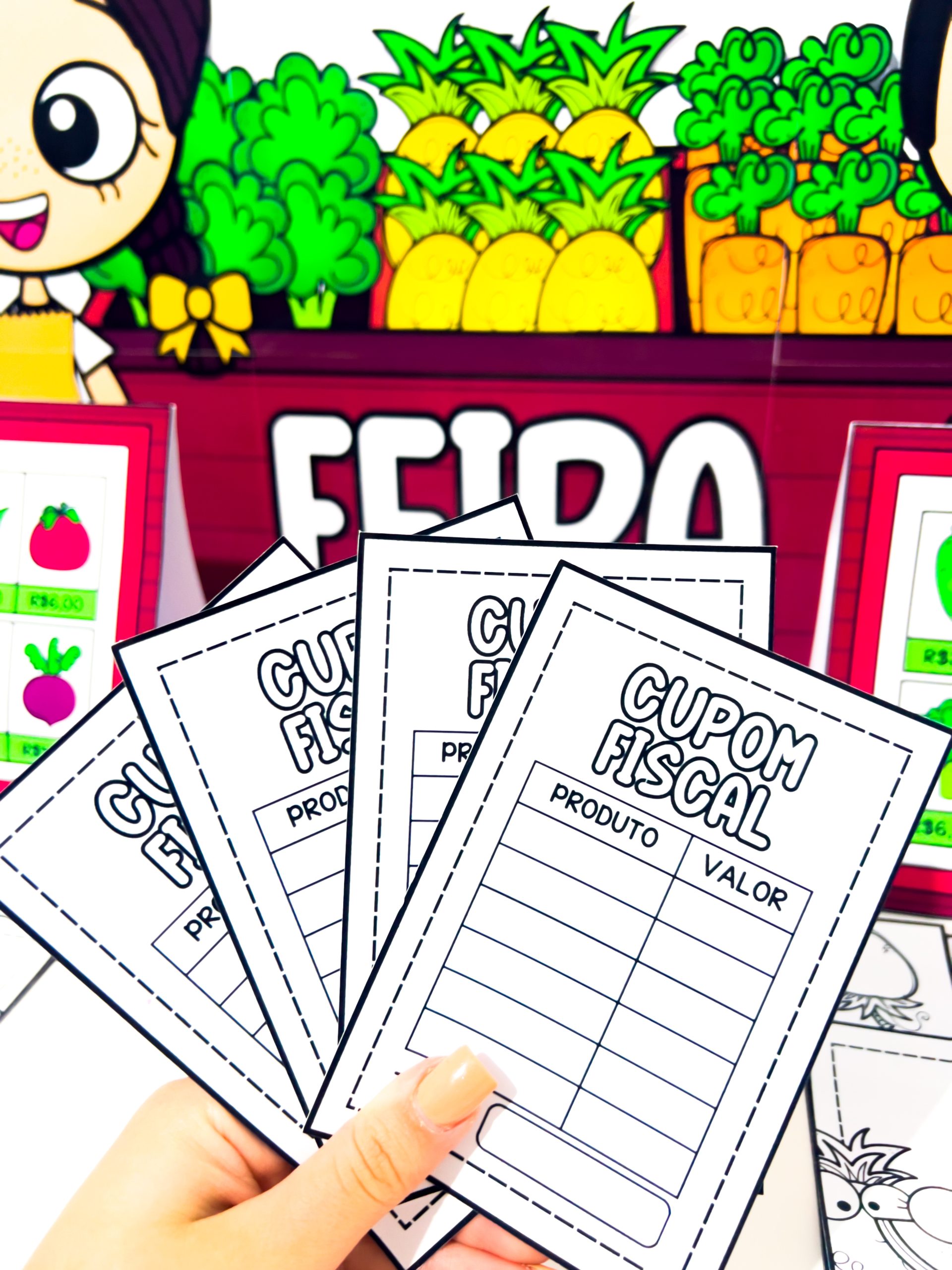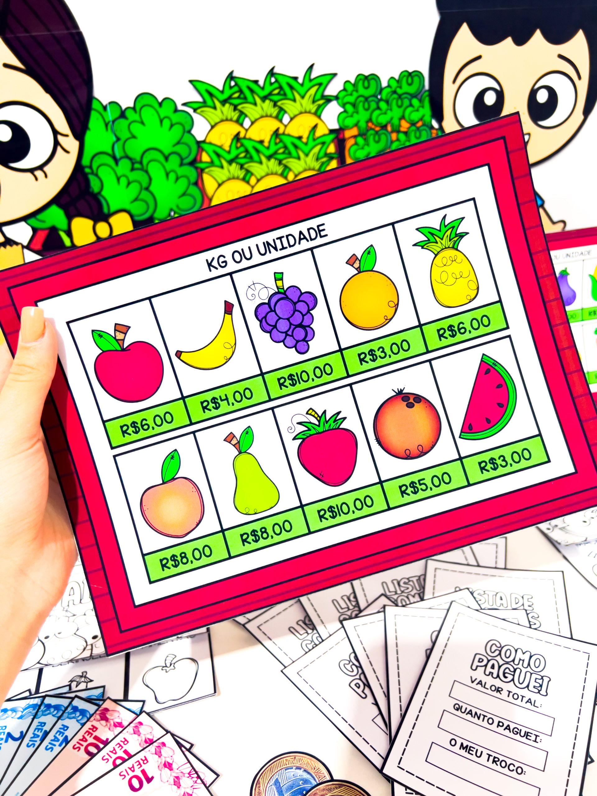 Um recurso pedagógico lúdico que transforma o aprendizado em uma experiência divertida sobre compras, valores e cotidiano da feira!