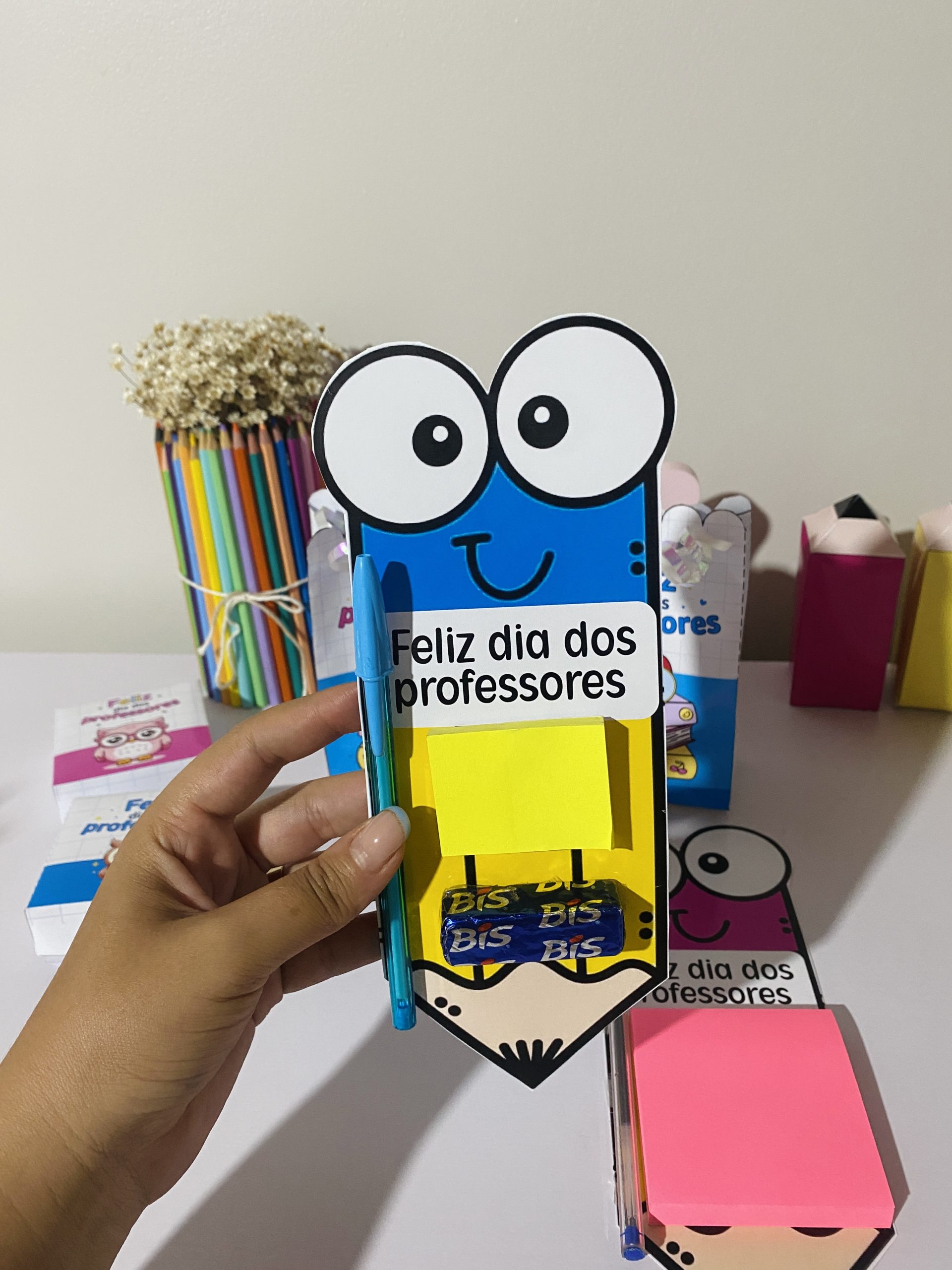 ✔️ Porta Bis – personalizado com a mensagem “Feliz Dia dos Professores” ;🍫