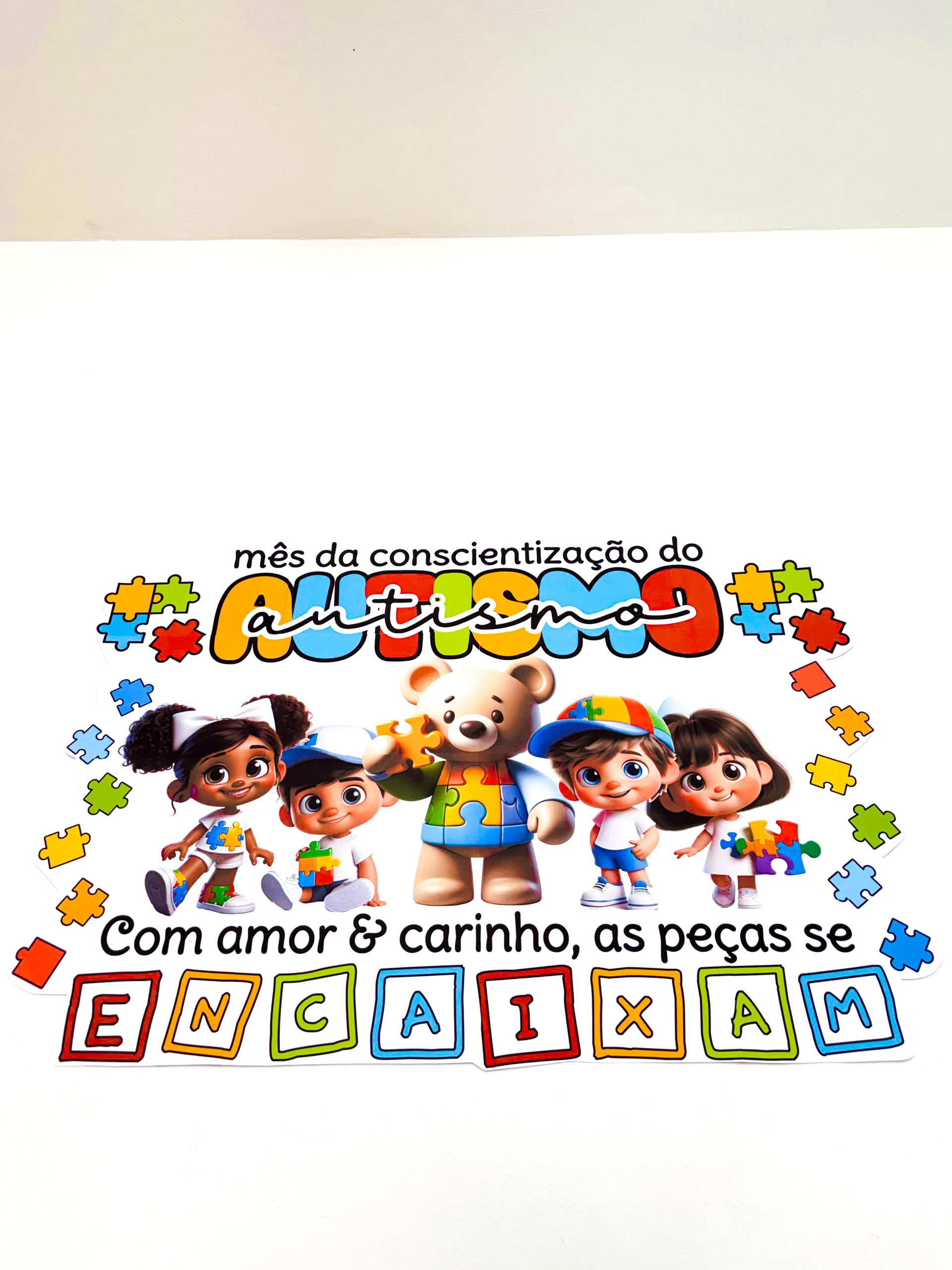 Com cores vibrantes, personagens fofos e as peças de quebra-cabeça que representam a diversidade do espectro, o material transmite uma mensagem especial para as crianças:
