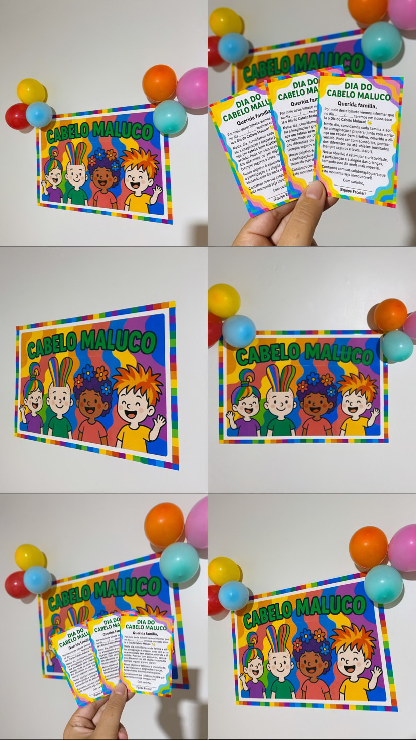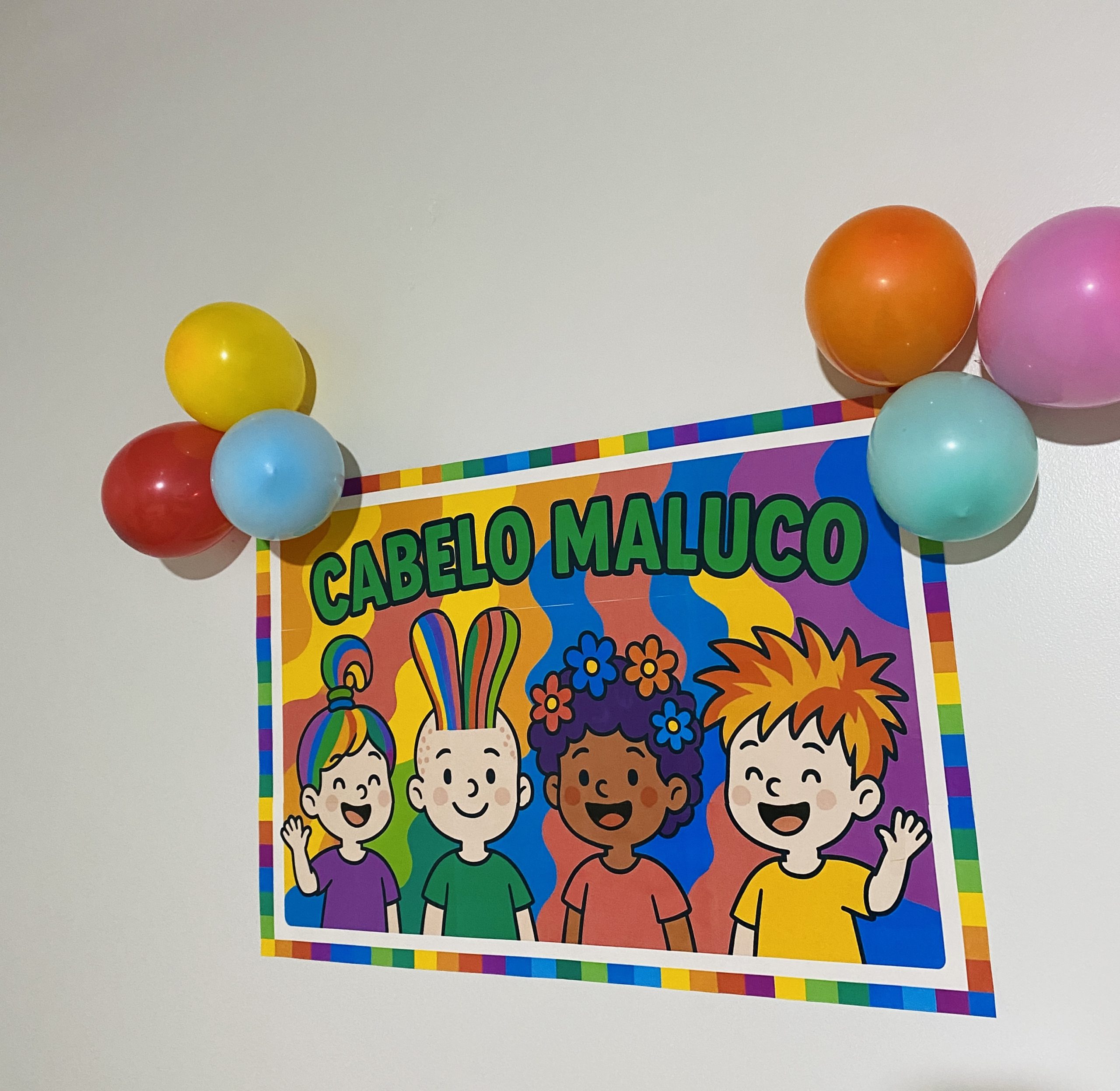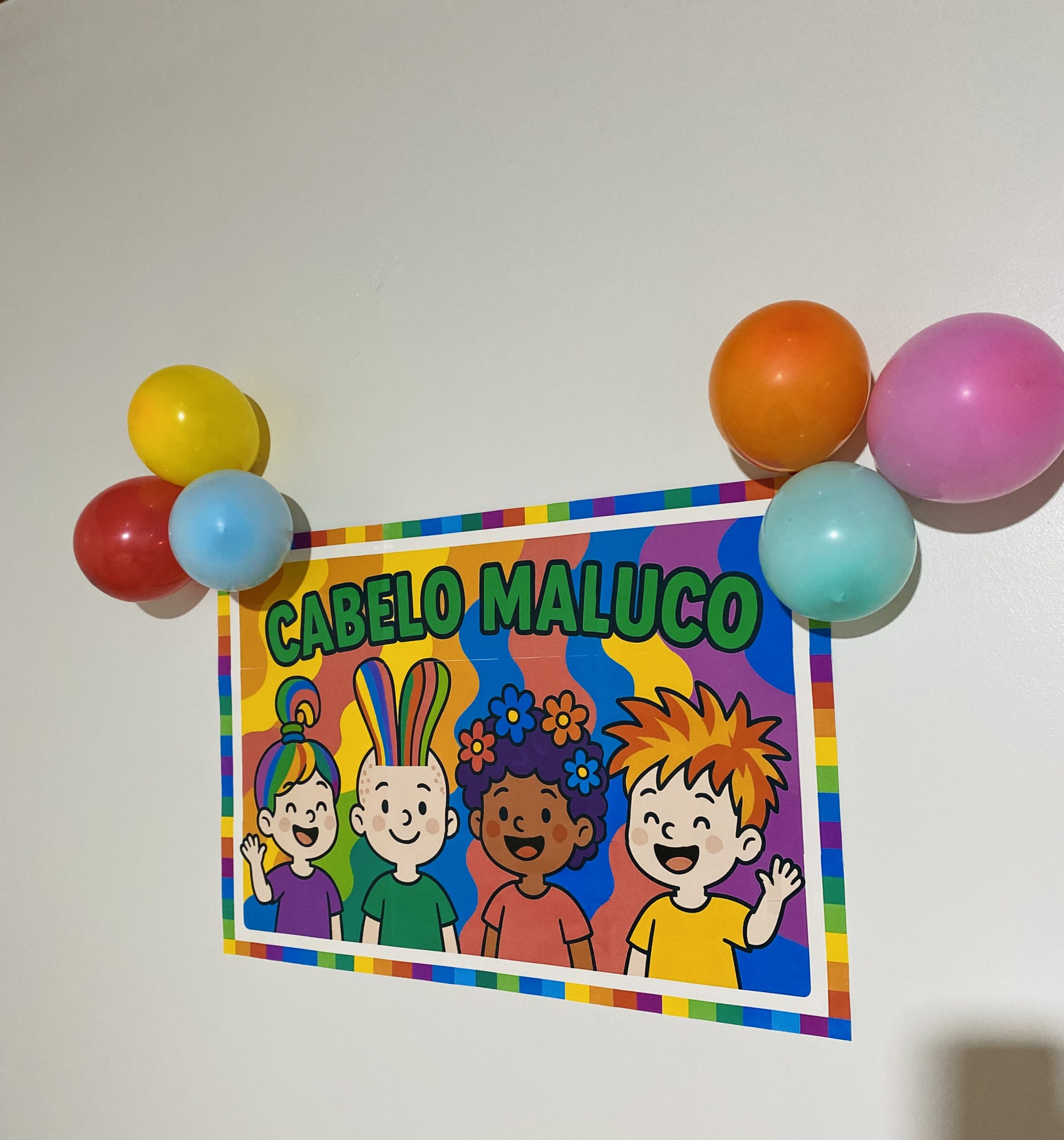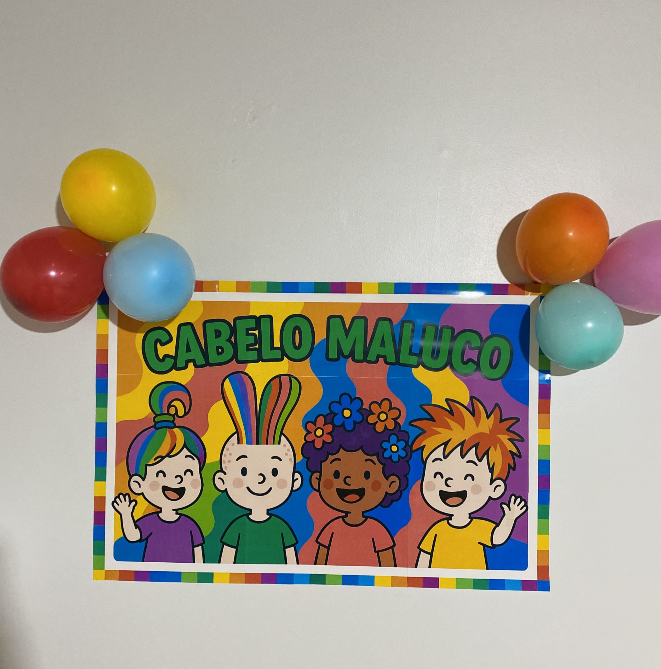 💇‍♀️🤩 Deixe o ambiente ainda mais divertido e criativo no Dia do Cabelo Maluco com este painel super colorido e vibrante 🎨🌈