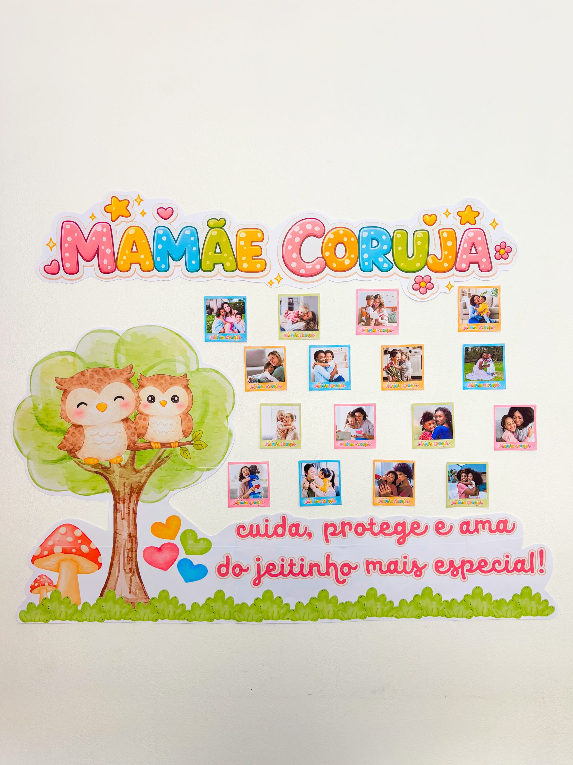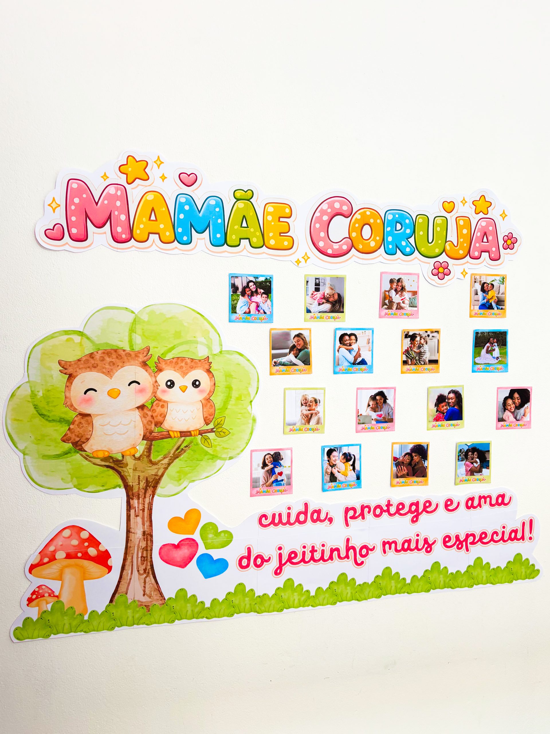 Esse painel foi pensado para ser muito mais do que decoração: é uma homenagem cheia de afeto, significado e conexão. Cada foto representa uma história, um colo e um amor único, valorizando as mães da sua turma de forma especial.